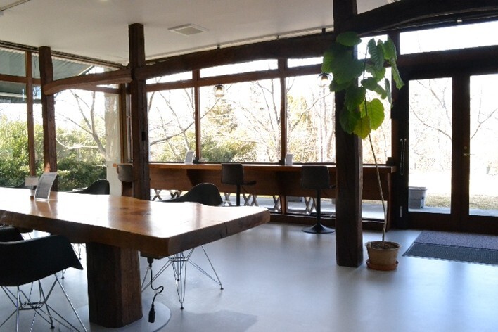 今回お話を伺ったのは鈴木隼人(すずきはやと)専務取締役。 別所ブランチの「Branch」というのは「枝」を表す言葉で 小鳥が木の枝に集まってくるように、この別所ブランチを起点に 別所温泉全体に人が集まってきてくれることをイメージしたと教えていただきました。 大湯や北向観音などの観光スポットも徒歩圏内の別所ブランチ。 仕事に+α温泉も楽しむことができワーケーションにもおすすめです! 【別所温泉コワーキングスペース 別所ブランチ~Bessho Branch~】 住所 上田市別所温泉212 利用可能時間 10:00~20:00 利用料金 1時間300円(税込)/3時間500円(税込)/6時間1000円(税込)/10時間3000円(税込) 個室利用 1時間1000円※要予約 設備 Wi-Fi/電源あり/飲食可/有料ドリンク(SNS投稿で飲み放題)/印刷可(有料) 休館日やご宿泊のお客様の都合で利用を制限する場合もあるため ご利用の際は事前に連絡することをおすすめします。 別所ブランチ公式LINE( https://lin.ee/zAl4EDn)からご連絡をお願いします。 詳細はWEBサイトをご覧ください。 |起業のヒントや情報収集もできる自然豊かなコワーキングスペース| 2つ目にご紹介するのは、長野大学や長野県工科短期大学などの教育機関と 各企業の研究開発の拠点が集まっている上田リサーチパーク内にある 「+519worklodge(プラスゴーイチキュウワークロッジ)」です。 2022年に上田市がコワーキングスペースを設置。 扉をあけた瞬間に広がる、大きな窓から見える自然が目を惹きます。 元々レストランだった部分を改装しており、広々としたワークスペースの他に 電子レンジやケトルなどが置かれたミニキッチンがあります。