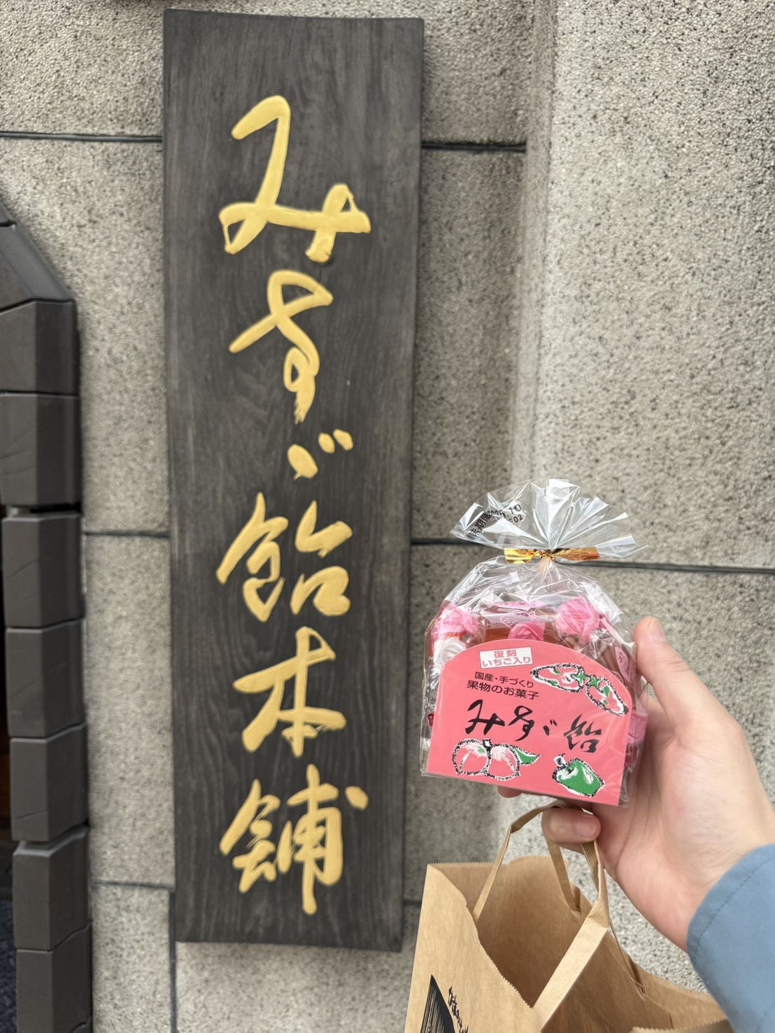 オブラートに包まれていない、出来立てのみすゞ飴を食べられるなんて本当に贅沢でした。最後に「試食されていない、いちご味が入ったみすゞ飴をどうぞ~」とお土産まで下さって、優しさ溢れるとても居心地の良い、すゞかぜがそっと通るような素敵なお店でした。今まさにいちご味のみすゞ飴を食べながらこのブログを書いていますが、いちごの果実感たっぷりでモチモチの食感が本当に美味しくて、ペンが進む進む。エアーで、店内の柱に身長を刻んだので、また成長したら伺いたいと思います。